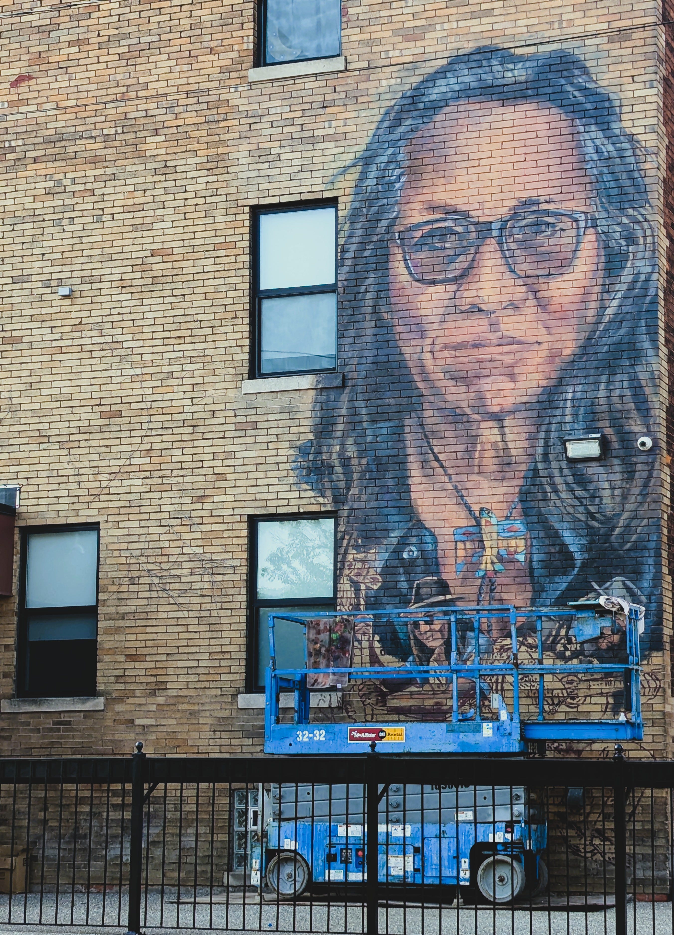 The artist is almost done. Visible just above the idle cherry picker, there are two smaller Sixto figures at the base of the mural where the brick still shows through. She has captured his likeness—the deep contours of his face, that mane—but what moves me is how well she has captured his quiet power. Everyone who knew his name or his music is in this mural. He is us.